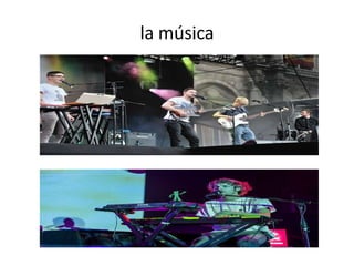Este documento resume lo que es la música como una manifestación artística y cultural que busca expresar sentimientos u ideas para crear una experiencia estética en el oyente. Explora los géneros y artistas más populares actualmente como el pop, rock, rap, Justin Bieber, Taylor Swift y Miley Cyrus. También destaca la importancia de la música no solo por su belleza sino como medio de comunicación entre personas y la capacidad de revelar al individuo. Finalmente, reconoce a The Beatles y The Rolling Stones como pioneros del rock que inspiraron a muchas band
