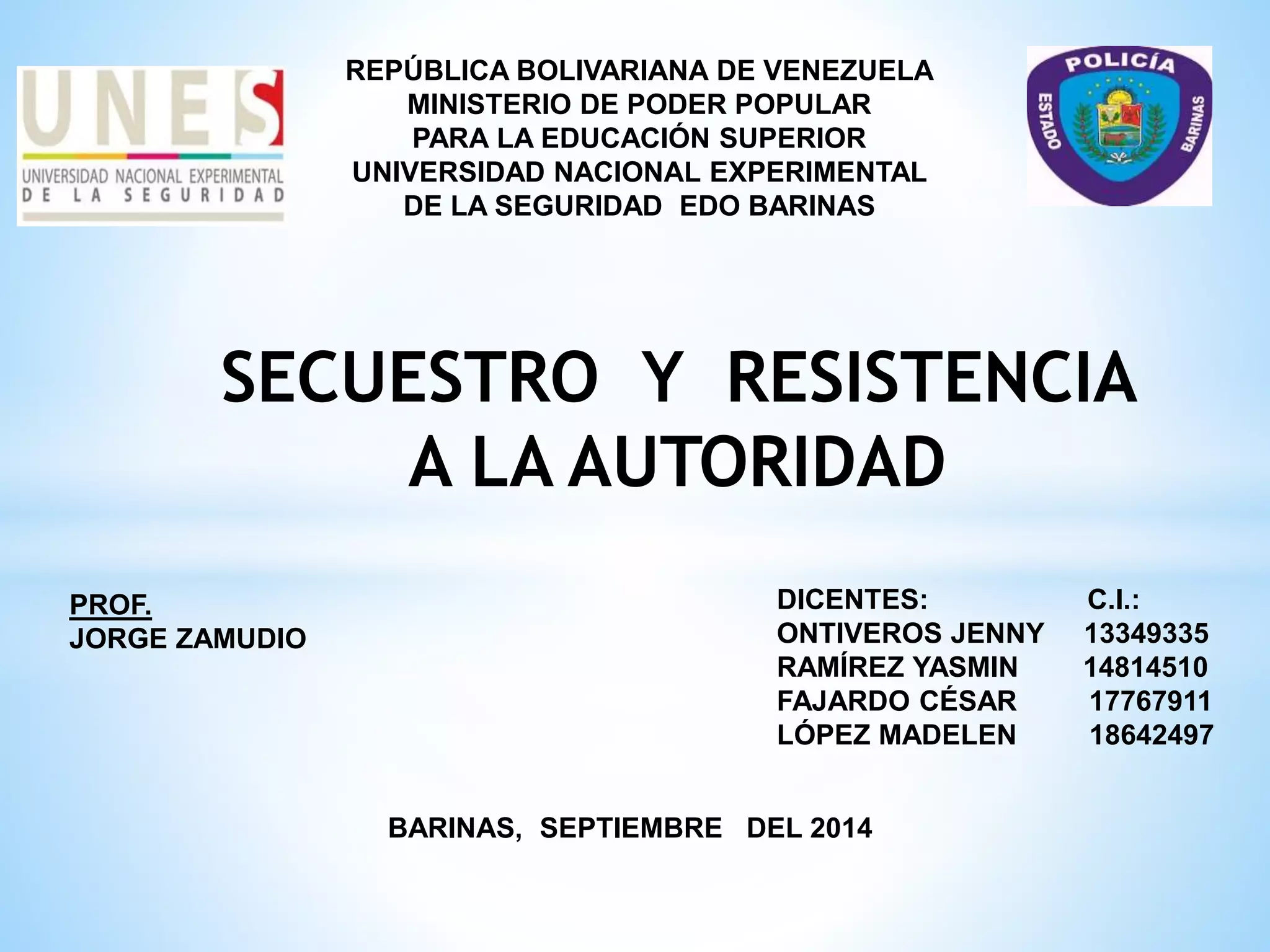 Este documento describe un incidente de secuestro reportado en Venezuela. Una ciudadana llamó a la central de telefonía para reportar que vio a dos hombres subir a la fuerza a un adolescente a un vehículo. La policía logró interceptar el vehículo sospechoso, pero el conductor intentó huir y fue abatido, mientras que lograron rescatar al adolescente y detener al otro hombre. Finalmente, se llamó a investigadores para que levantaran el cadáver.