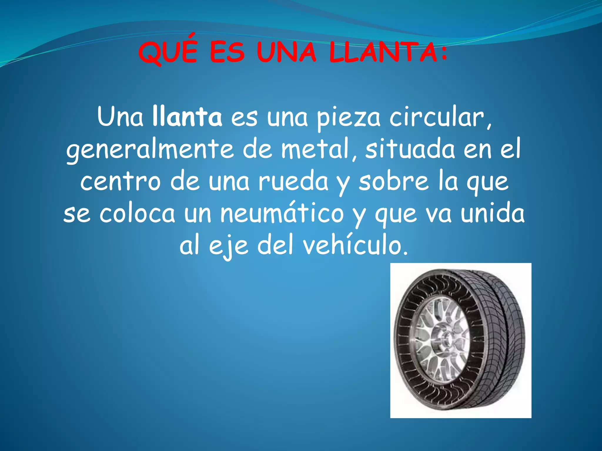 Una llanta es una pieza circular de metal situada en el centro de una rueda sobre la que se coloca un neumático. Goodyear descubrió la vulcanización del caucho en 1839. Más tarde, en 1887, John Boyd Dunlop inventó el neumático al diseñar una cámara de aire envuelta en tela que pegó a un aro de madera. En 1888 registró la patente del neumático, que revolucionó la rueda. Hacia 1910, los neumáticos incorporaron un aro metálico y estructuras