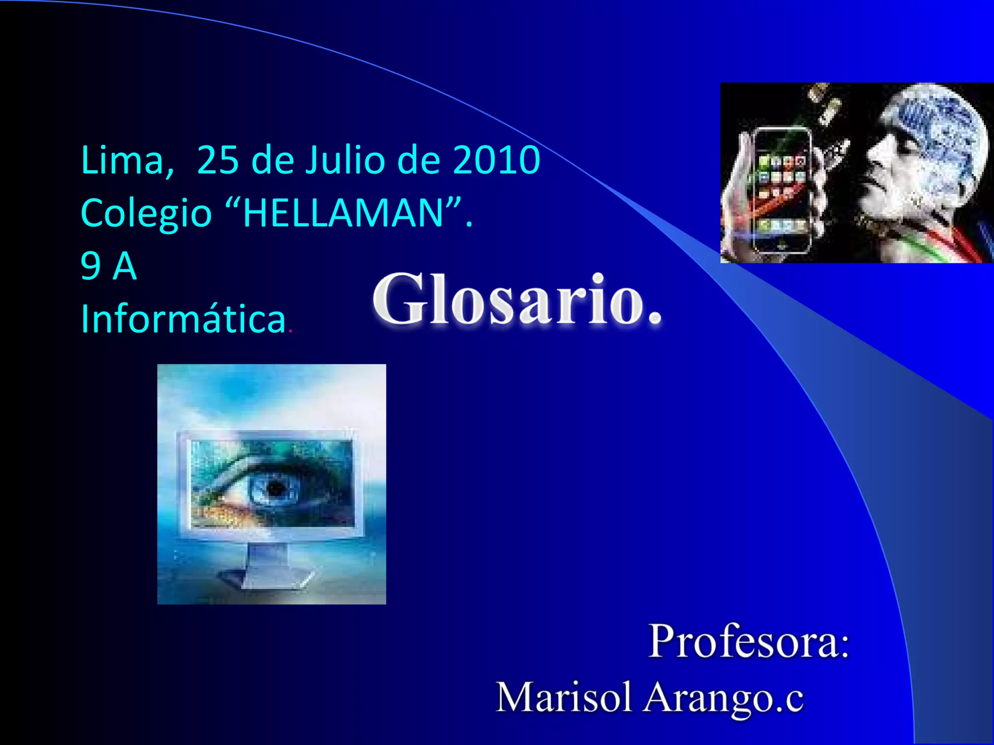 Este documento define términos clave relacionados con la informática como hardware, software, dispositivos de entrada y salida, sistemas operativos, programas, algoritmos y redes. Explica conceptos como tarjeta madre, fuente de poder, tarjetas de memoria, discos duros e Internet y cómo estos componentes interactúan para procesar y almacenar información de manera automática.