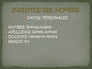 El documento describe la invención de varios importantes inventos como el ferrocarril, la bicicleta, el helicóptero, el televisor y el teléfono. Detalla el nombre de cada inventor, el año de descubrimiento y la necesidad que cubrió cada invento. Además, expresa que la tecnología es impactante porque permite crear cosas que evolucionan y atraen la atención humana.