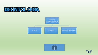 La deontología es la ciencia que estudia los deberes morales, éticos y jurídicos asociados con el ejercicio de una profesión. Se originó a partir del trabajo del filósofo inglés Jeremías Bentham y se refiere al estudio de los deberes (deon) de los profesionales. En el caso de los abogados, la deontología incluye deberes como la relación con clientes, colegas y tribunales.