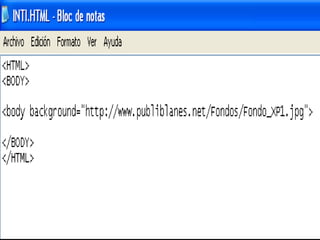 Este documento describe tres etiquetas HTML: las etiquetas de marcos flotantes que se usan para mostrar múltiples piezas de información en una sola ventana, la etiqueta <IFRAME> que inserta otro documento HTML, y la etiqueta <background> que se usa para aplicar una imagen como fondo de la página.