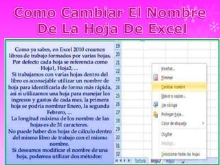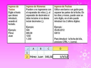 Este documento describe diferentes formas de abrir Excel 2010, incluyendo hacer clic en el botón Inicio, ir a Programas Recientes o hacer clic en un acceso directo en el escritorio. También explica cómo seleccionar rangos de celdas con el mouse o teclado y diferentes opciones para borrar, eliminar, insertar y ajustar el tamaño de celdas, filas y columnas.