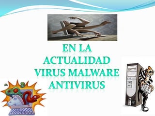 El documento define los diferentes tipos de malware, incluyendo virus, troyanos, gusanos, spyware, adware, ransomware, botnets, y rootkits. Explica brevemente sus funciones como dañar sistemas, robar información, mostrar publicidad no deseada, y permitir el acceso no autorizado a sistemas comprometidos.