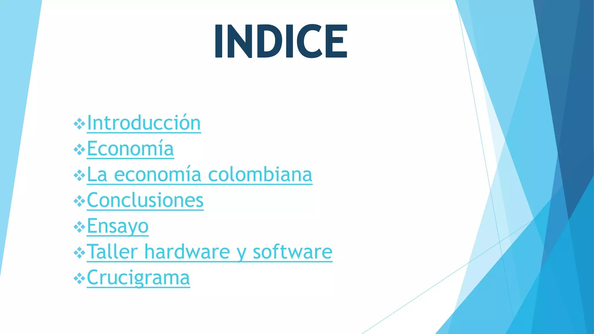Este documento resume la economía colombiana. Explica que la economía estudia la administración de recursos limitados para satisfacer las necesidades humanas. Luego describe que la economía colombiana ha experimentado un período prolongado de expansión en los últimos 6 años después de décadas de desempeño mediocre o volátil. Finalmente, señala que la economía colombiana depende en gran medida de los precios altos de las materias primas.