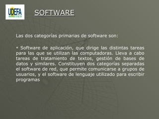 Los programas de computadora se dividen en dos categorías principales: sistemas operativos, que controlan las funciones básicas de la computadora, y software de aplicación, que dirige tareas específicas como procesamiento de texto o bases de datos. Los sistemas operativos coordinan el hardware, organizan archivos y gestionan errores, mientras que el software de aplicación lleva a cabo tareas particulares para las que se usan las computadoras.