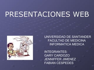 El documento describe cómo crear presentaciones web en plataformas como SlideShare.net sin necesidad de descargar archivos. Explica que se suben presentaciones PowerPoint a estas plataformas y se comparten en línea. Luego detalla los 9 pasos para cargar una presentación en SlideShare.net, que incluyen registrarse, seleccionar el archivo PowerPoint y editar información como el título.