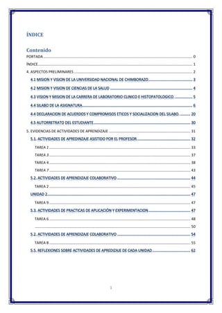 Este documento presenta la información general de la asignatura de Informática impartida en la Universidad Nacional de Chimborazo. La asignatura se imparte en el primer semestre de la carrera de Laboratorio Clínico y tiene como objetivo que los estudiantes reconozcan los componentes de un ordenador y utilicen herramientas informáticas y de la Web 2.0. El documento describe las unidades curriculares de la asignatura, que incluyen sistemas operativos, ofimática, servic
