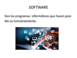 El documento describe los componentes principales de una computadora, incluyendo el hardware como la CPU, placa madre y memoria, y el software. También explica diferentes tipos de periféricos como dispositivos de entrada, salida y almacenamiento que permiten la interacción entre la computadora y el usuario. En conclusión, destaca que la computadora es una herramienta fundamental para transmitir y generar conocimiento.