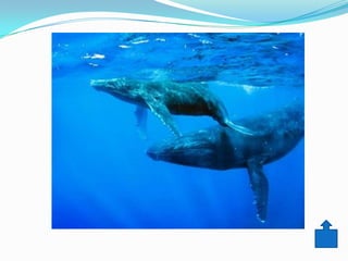 Este documento describe algunas de las maravillas que habitan el fondo del mar, incluyendo peces de colores vibrantes y formas extrañas, tortugas, y la ballena azul, el animal más grande del planeta. Se proporcionan detalles sobre un pez que puede caminar en el fondo marino, las características de las tortugas marinas y terrestres, y el enorme tamaño y peso que puede alcanzar la ballena azul.