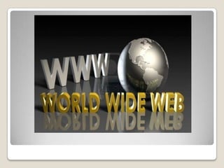 La World Wide Web fue creada en 1989 por Tim Berners-Lee en el CERN para permitir el acceso y distribución de información a través de Internet. Consiste en páginas web interconectadas mediante hiperenlaces que pueden ser visualizadas usando un navegador web. El punto de inflexión de la Web ocurrió con el lanzamiento del navegador gráfico Mosaic en 1993.