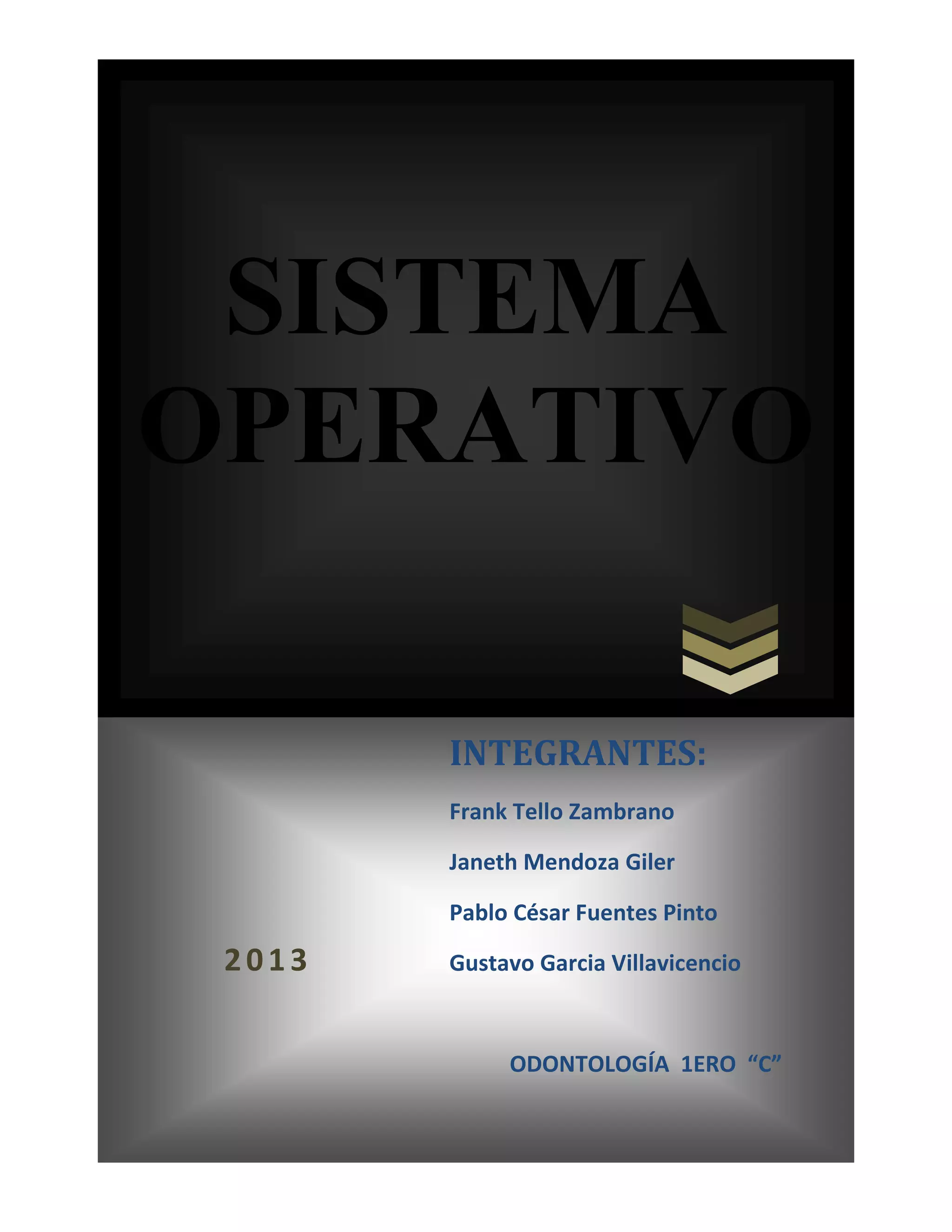 Este documento presenta un resumen de los conceptos básicos de un sistema operativo. En primer lugar, define las partes principales de una computadora y sus funciones. Luego describe los elementos clave de una interfaz gráfica de usuario como el escritorio, las ventanas, las barras de menú y herramientas. Finalmente, explica cómo administrar archivos y carpetas en el sistema.