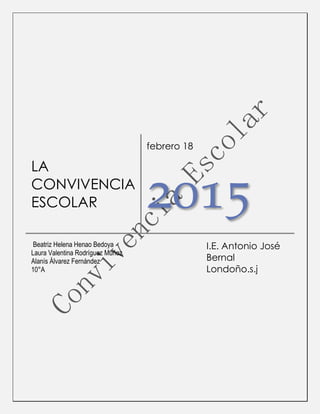 El documento habla sobre la importancia de la convivencia en diferentes ámbitos como la familia, la pareja y la sociedad. Señala que para que la convivencia sea agradable se requiere la colaboración y el respeto de todos, aunque inevitablemente habrá discusiones y diferencias. También menciona que convivir con animales puede traer beneficios para la salud física y mental de las personas.