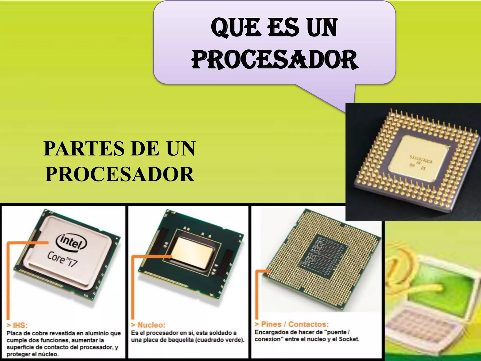Este documento presenta una comparación entre los procesadores Intel y AMD. Explica que Intel ofrece procesadores más eficientes pero a un mayor precio, mientras que AMD ofrece opciones de menor costo pero también menor rendimiento. Asimismo, detalla los diferentes tipos de procesadores de cada marca como los Intel Core i7, i5, i3 y Dual Core, y los AMD Athlon, Sempron, Duron y Phenom.