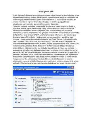 drivers instalados en su sistema. Driver Genius Professional se apoya en una interfaz de