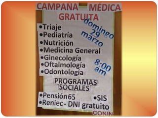 La campaña médica tuvo como objetivos identificar y tratar problemas de salud, salud visual y oral en la población. Se realizaron exámenes médicos, inmunizaciones, atenciones de nutrición, odontología y oftalmología que beneficiaron a 841 personas. Los voluntarios del Colegio Internacional Casuarinas jugaron un papel importante en la organización de la campaña.