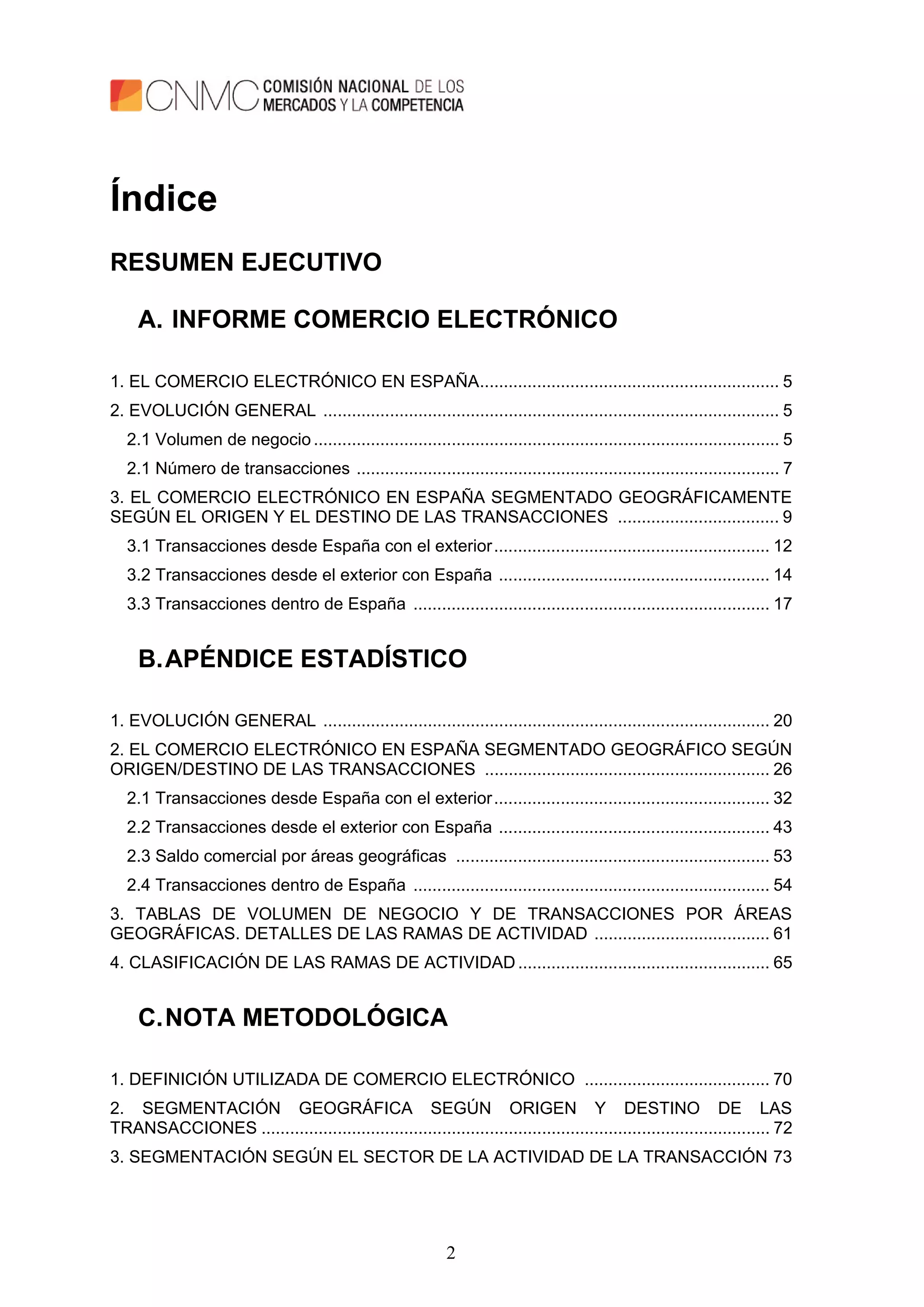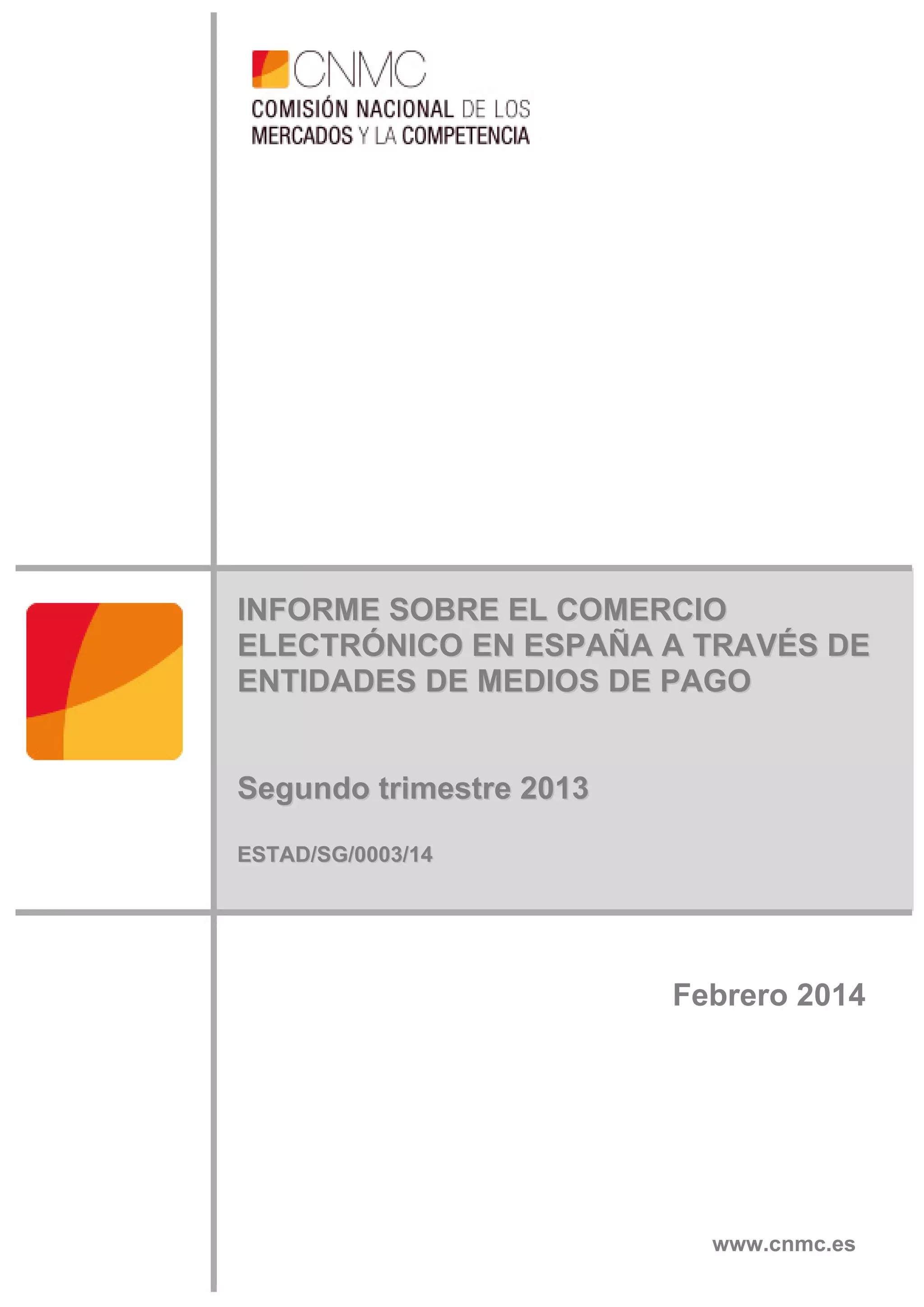 El comercio electrónico en España alcanzó 3.185,3 millones de euros en el segundo trimestre de 2013, un 20,6% más que el año anterior. Las transacciones dentro de España representaron el 41,6% del volumen de negocio total, mientras que las transacciones desde el exterior con España y desde España con el exterior representaron el 17,3% y el 41,1% respectivamente. La Unión Europea fue el principal destino de las compras desde España, con 1.170,4 millones de euros, mientras que desde el exterior la Unión Europea representó la mayor parte de