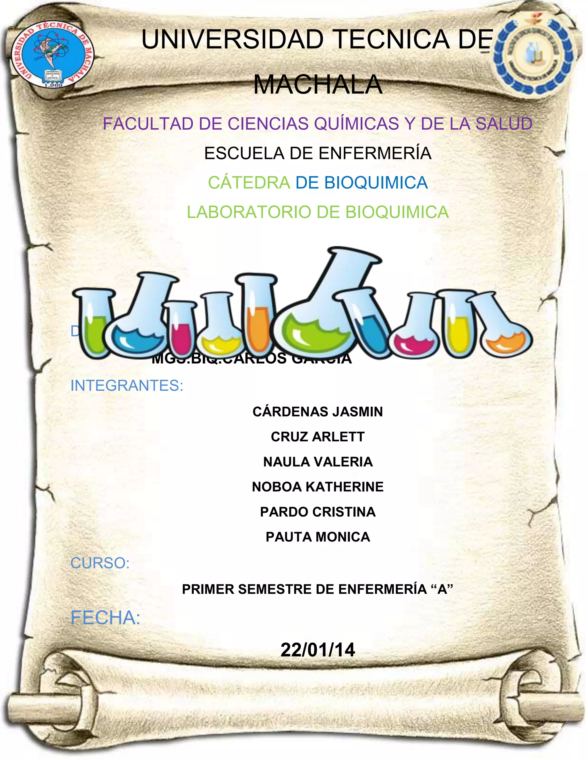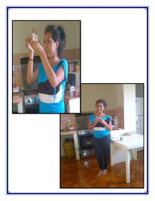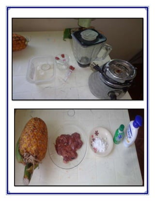 Este documento describe un experimento realizado por estudiantes de enfermería para observar el ADN de forma casera. El procedimiento incluyó licuar hígado de pollo, agregar detergente y enzimas para romper las células, y luego añadir alcohol para separar el ADN de las proteínas. Los estudiantes observaron filamentos blancos en el alcohol, que identificaron como ADN. El objetivo del experimento fue extraer y visualizar el ADN de manera sencilla y económica.