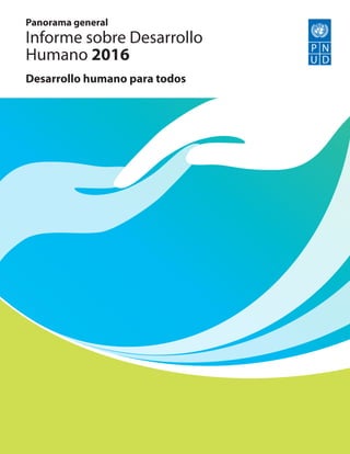 Este documento presenta un resumen del Informe sobre Desarrollo Humano 2016. El informe explora cómo garantizar el desarrollo humano para todos y aborda los desafíos que enfrentan las personas que se han quedado rezagadas, como los pobres, minorías y grupos vulnerables. También examina cómo los marcos analíticos y evaluaciones pueden mejorar para asegurar el desarrollo humano universal, y propone estrategias a nivel nacional e internacional para atender a quienes se han quedado atrás.