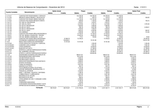 El resumen presenta el balance de comprobación de la Parroquia de Puembo para diciembre de 2012. Reporta los saldos iniciales y finales de varias cuentas contables, así como los flujos de débito y crédito que ocurrieron durante el mes. El balance muestra los ingresos y gastos de la parroquia, incluyendo transacciones bancarias, cuentas por cobrar y pagar, y movimientos en cuentas relacionadas a personal, bienes, servicios y obras de infraestructura.