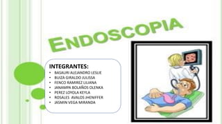 El documento describe diferentes tipos de endoscopia, incluyendo laparoscopia, colposcopia y colonoscopia, entre otras, cada una destinada a explorar un área específica del cuerpo. También detalla indicaciones y contraindicaciones para realizar una endoscopia, así como la preparación y las medidas de seguridad necesarias antes y durante el procedimiento. Además, incluye instrucciones sobre la colocación y retiro del equipo de protección personal (EPP) para el personal de salud y medidas preventivas para evitar infecciones.