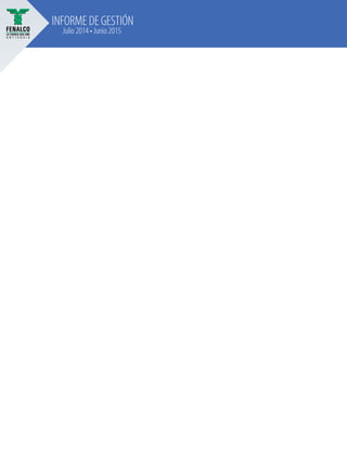 Este documento presenta el informe de gestión de FENALCO Seccional Antioquia para el periodo de julio de 2014 a junio de 2015. Resume los logros en modernización tecnológica, capacitación del talento humano, representatividad ante el gobierno, y beneficios para afiliados a través de convenios y eventos sectoriales. También describe los desafíos económicos del periodo y las estrategias implementadas para fortalecer la asociatividad empresarial y consolidar el gremio.