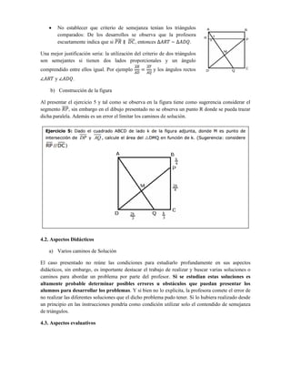 Este documento presenta el caso de una profesora que se enfrenta a un dilema evaluativo. En una prueba sobre semejanza de triángulos, un alumno resolvió correctamente un ejercicio usando geometría analítica en vez de semejanza. Esto genera controversia sobre si se debe evaluar el contenido específico o la resolución del problema. El documento analiza aspectos matemáticos, didácticos y evaluativos del caso y propone crear instrumentos evaluativos claros y considerar varias soluciones a los problemas.