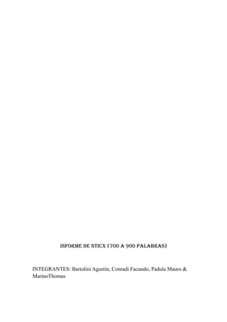Este documento presenta un trabajo práctico sobre adolescentes y redes sociales realizado por un grupo de estudiantes. Analiza tres textos que exploran temas como la privacidad en la era digital y cómo las redes sociales exponen detalles personales. También reflexiona sobre la importancia del silencio y la privacidad frente a una cultura cada vez más expuesta online.