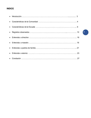 Este documento resume la observación realizada por una alumna en la Escuela Primaria "Revolución" en Ciudad Ixtepec, Oaxaca. Describe las características de la escuela y la comunidad, así como las actividades llevadas a cabo en un salón de 5to grado durante la jornada escolar, incluyendo el desarrollo de clases, explicación de tareas, y la dinámica y métodos de enseñanza de la maestra.