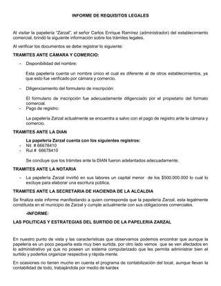 1) La papelería Zarzal ha completado todos los trámites legales ante la Cámara y Comercio, DIAN, Notaría y Secretaría de Hacienda de la Alcaldía.