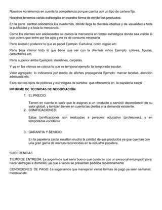 3) La papelería ofrece precios competitivos, bonificaciones a maestros, y enfatiza la calidad y garantía de