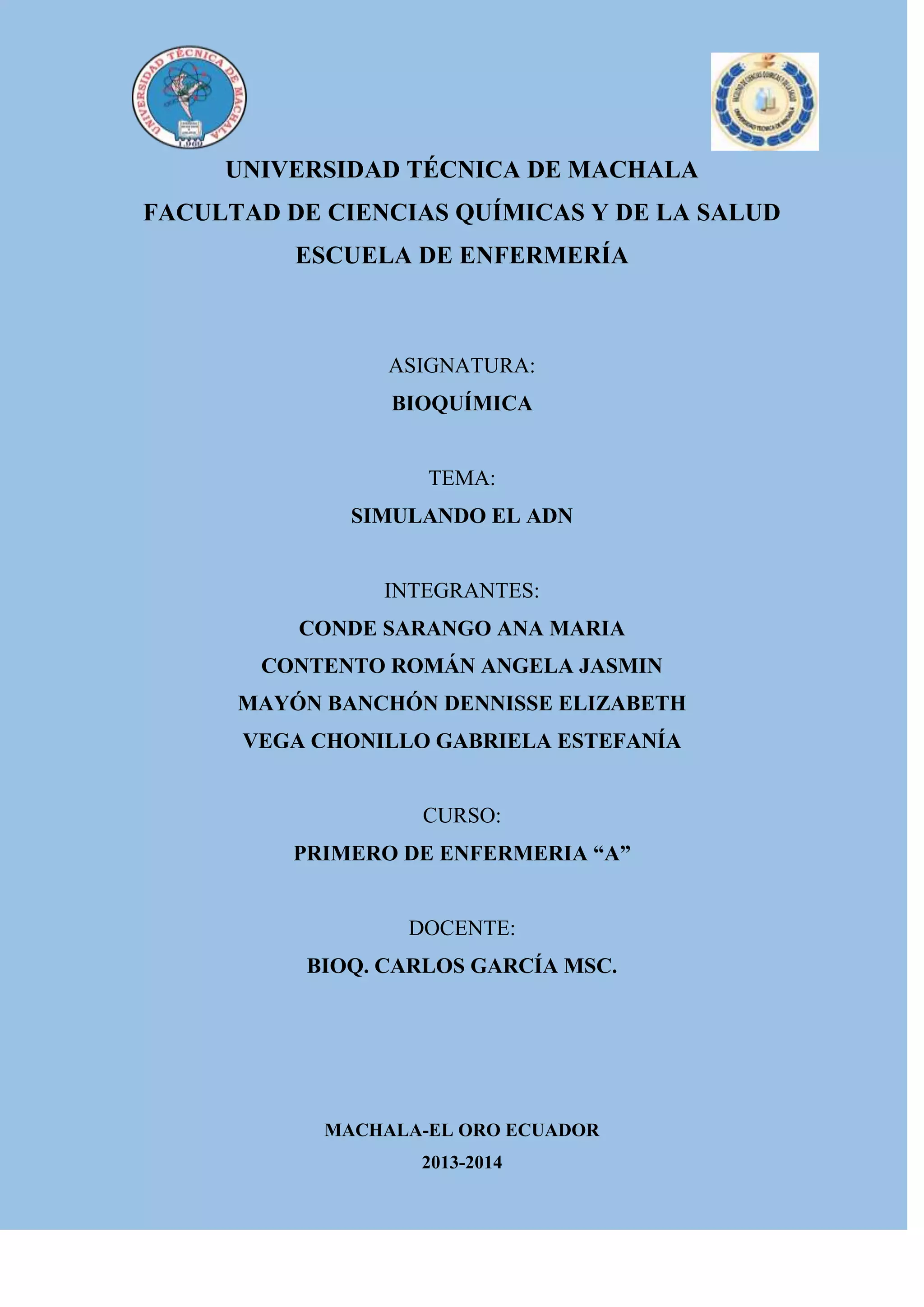 Este documento describe un procedimiento para simular la extracción de ADN a partir de tejido animal (hígado de pollo) en 3 pasos: 1) licuar el hígado y filtrar para separar el ADN, 2) usar detergente para romper las membranas celulares y enzimas (jugo de piña) para degradar proteínas, 3) agregar alcohol para que el ADN ascienda y pueda ser observado. El objetivo era aislar ADN de forma segura, fácil y práctica para observar su estructura.