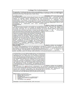 El resumen analiza las fortalezas y deficiencias del proyecto de intervención socioeducativa llevado a cabo. Se lograron realizar las 6 actividades planificadas con algunos cambios, y se aplicaron teorías pedagógicas como las de Piaget, Vigotsky y Rogers. Sin embargo, no se enfocó en aplicar los programas de estudio y se presentaron inconvenientes en el tiempo y organización de algunas actividades. Aun así, se generaron ambientes que promovieron la autonomía de los estudiantes.
