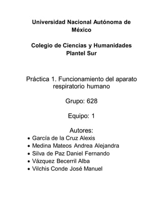 Este documento describe un experimento realizado por estudiantes para comprender la relación entre el sistema respiratorio y circulatorio humanos. Midieron la frecuencia cardiaca y respiratoria de compañeros antes y después de hacer ejercicio, observando un aumento en ambas. Esto confirma que al aumentar el gasto de energía, la respiración y circulación deben acelerarse para proporcionar más oxígeno a las células. El documento también explica conceptos clave como inhalación, exhalación, alvéolos y el ciclo respiratorio.
