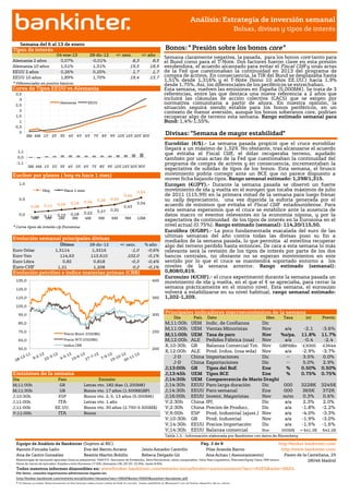El documento analiza la evolución de los mercados financieros durante la semana pasada y prevé su comportamiento en la próxima semana. La semana pasada, las bolsas subieron significativamente debido al acuerdo en EE.UU. para evitar el precipicio fiscal. Los bonos de los países centrales cayeron por este acuerdo y por las actas de la Fed. Esta semana, se espera que las bolsas continúen su tendencia alcista aunque de forma más moderada, mientras que los bonos periféricos se mantendrán estables a pesar de que los