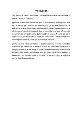 adolescente de 15 años y a un profesor. Se analiza la etapa evolutiva del