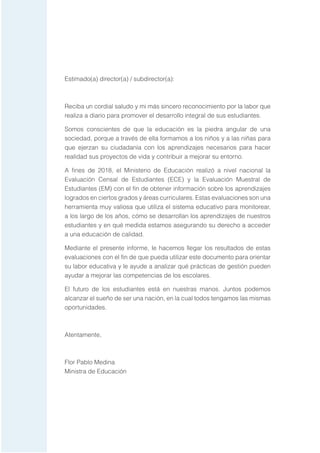 Este documento presenta los resultados de la Evaluación Censal de Estudiantes (ECE) de 2018 para un director de una institución educativa. En 3 oraciones o menos:
