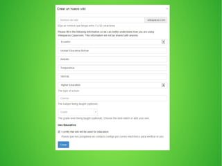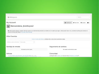 El documento describe el proceso de creación de un wiki en Wikispaces por parte de un grupo de estudiantes. Explica cada paso, como crear una cuenta, confirmarla a través del correo electrónico, llenar la información para crear el wiki, y las características y herramientas disponibles una vez creado, como añadir páginas, imágenes, videos y documentos. También compara las similitudes y diferencias entre wikis y blogs.