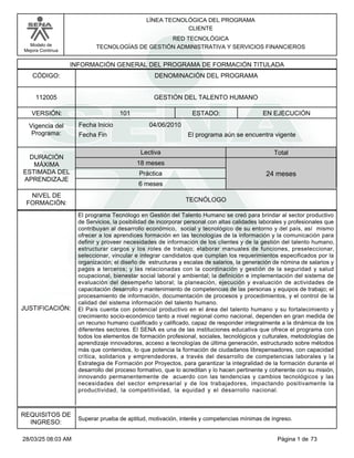 INFORMACIÓN GENERAL DEL PROGRAMA DE FORMACIÓN TITULADA