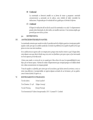El informe presenta una evaluación psicológica de una mujer de 32 años, docente y madre, que se enfrenta a desafíos personales y laborales. Se revelan aspectos como su capacidad intelectual por debajo del promedio, un manejo del estrés complicado y una tendencia al individualismo en sus relaciones. Se sugieren recomendaciones para mejorar su desarrollo personal y profesional mediante diplomados y terapia.