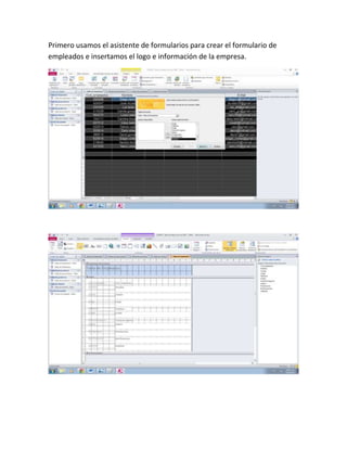El Colegio Nicolás Esguerra creó un formulario de empleados usando un asistente de formularios. Insertaron el logo de la empresa y datos básicos en el formulario. El formulario permitirá generar informes sobre los empleados.