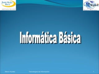 El documento describe los conceptos básicos de la informática y la tecnología de la información, incluyendo la definición de informática, computación, hardware, software, la arquitectura de un computador con sus componentes principales como la memoria, la unidad central de procesamiento y los dispositivos de entrada y salida. También describe varios periféricos y dispositivos auxiliares comunes como monitores, teclados, ratones, impresoras, escáneres, discos duros, CDs, DVDs y memorias USB.