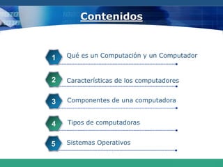 El documento introduce conceptos básicos de informática como computación, computadora, sus funciones y componentes. Explica que una computadora está compuesta de hardware y software. Describe los principales componentes de hardware internos como la tarjeta madre, procesador, memoria RAM y ROM. También cubre dispositivos de entrada, salida y almacenamiento. Define software de sistema y de aplicación, e introduce conceptos como sistema operativo y algunos ejemplos como Windows y Linux.