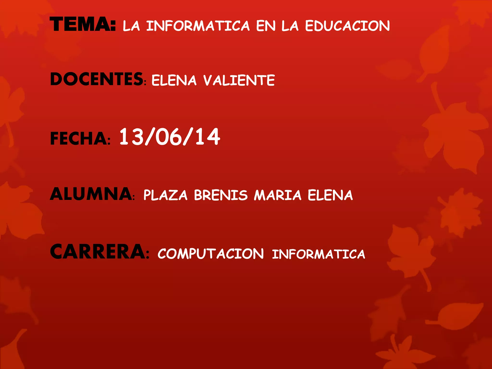 El documento habla sobre la integración de las tecnologías de la información y la comunicación (TICs) en las prácticas pedagógicas en los primeros niveles educativos. Específicamente, se refiere al uso adecuado que los docentes dan a las herramientas informáticas en la educación infantil, utilizándolas en diversas metodologías para mejorar la enseñanza de los niños pequeños. Además, define la Informática Educativa como la sinergia entre la educación y la informática, donde cada una a