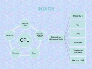 El documento aborda los componentes básicos de un ordenador, incluyendo la CPU, memoria RAM, placa base y dispositivos de almacenamiento, destacando sus funciones esenciales. También se explica la gestión de sistemas operativos y la importancia de realizar copias de seguridad de la información almacenada. Finalmente, menciona las características del disco duro y las opciones de restauración del sistema para manejar cambios no deseados.