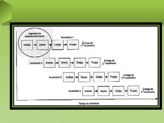 Este documento describe varios modelos de procesos de software, incluyendo el modelo lineal secuencial, el modelo de construcción de prototipos, el modelo DRA, y modelos evolutivos como el incremental, el espiral, el espiral WINWIN y el de desarrollo concurrente. Explica que cada modelo representa una simplificación del proceso de desarrollo de software y se enfoca en diferentes aspectos del ciclo de vida del software.