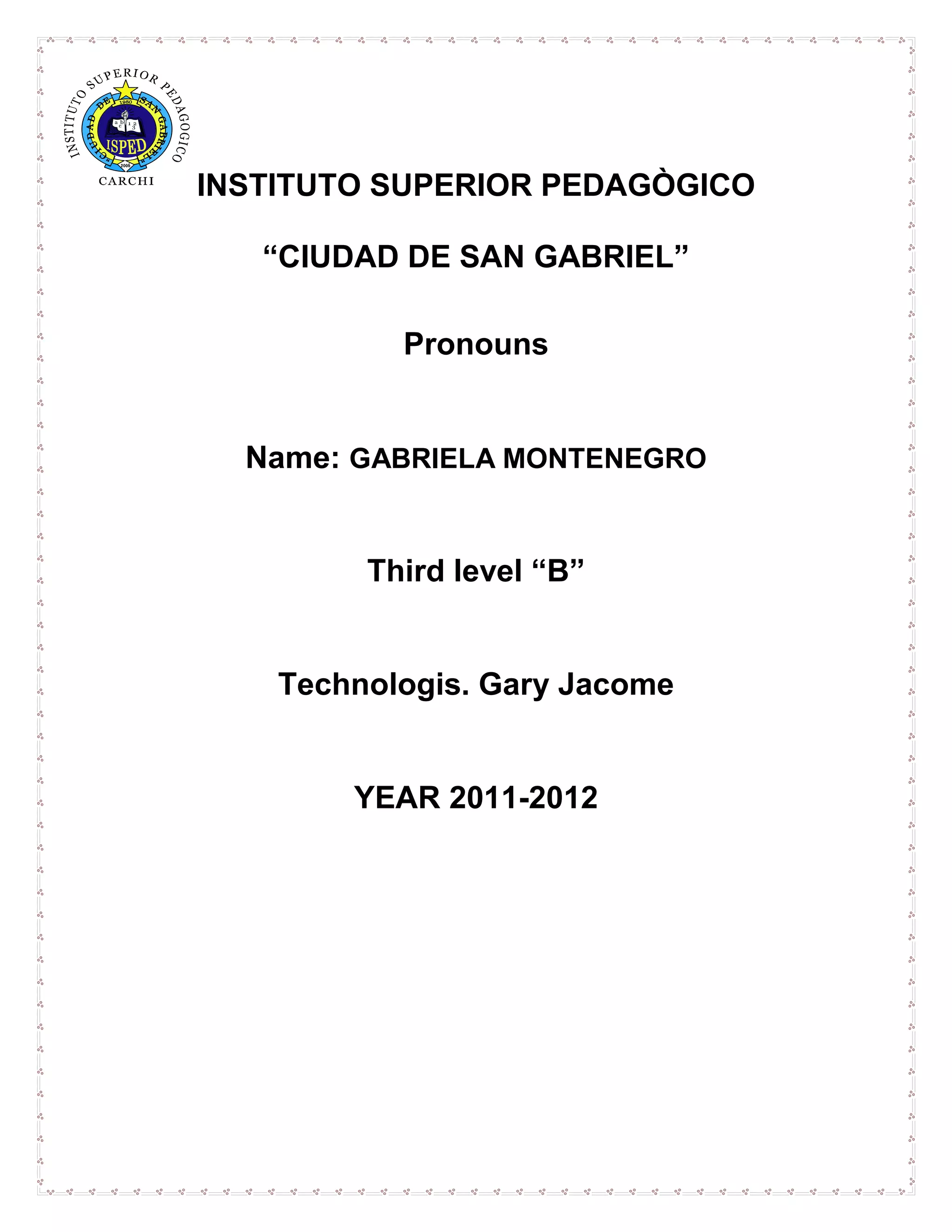 Este documento presenta una guía sobre el uso de pronombres personales y posesivos en inglés. Explica que en inglés no existe la forma "usted", sino que se usa la misma forma para "tú" y "usted". Luego lista los pronombres personales en función de sujeto y objeto con ejemplos. Finalmente, explica los pronombres posesivos en función de determinante y pronombre con ejemplos.