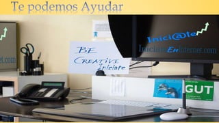 El documento promueve la importancia de tener presencia en internet para los negocios. Destaca que si una empresa no está en línea, no existe, y anima a los lectores a tomar acción para mejorar su visibilidad. Finaliza invitando a contactar para obtener ayuda en este proceso.