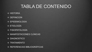 Este documento resume la injuria renal aguda (IRA), incluyendo su historia, definición, epidemiología, etiología, fisiopatología, manifestaciones clínicas, diagnóstico y tratamiento. Describe las cuatro fases de la IRA (comienzo, extensión, mantenimiento y recuperación) y los tres tipos principales (prerrenal, intrínseca y postrrenal). Explica cómo evaluar y clasificar la gravedad de la IRA usando los niveles de creatinina sérica y diuresis.